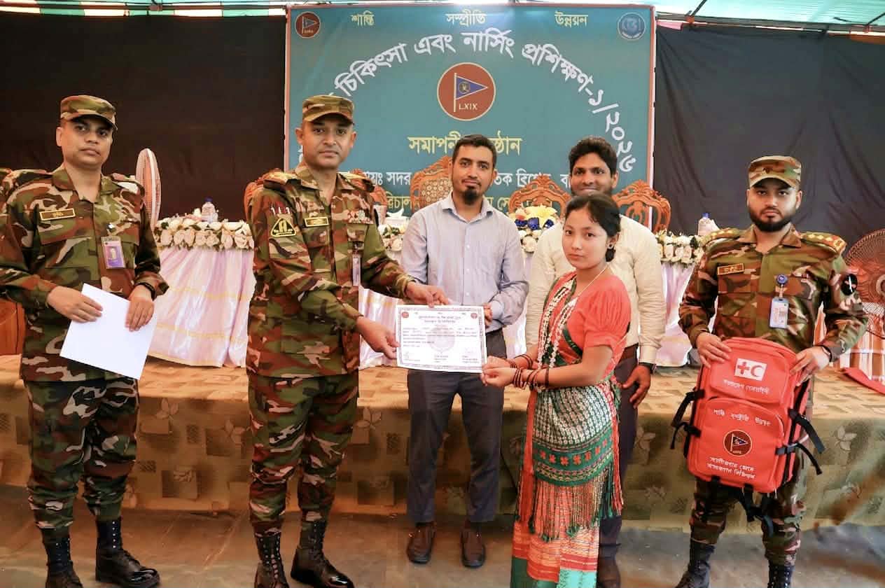 বান্দরবানে অসহায়দের পাশে বাংলাদেশ সেনাবাহিনী—মানবিক সহায়তায় স্বপ্ন ফিরছে শতাধিক পরিবারে আলীকদমে সেনাবাহিনীর উদ্যোগে স্বাস্থ্যসেবা প্রশিক্ষণ সম্পন্ন বান্দরবানের দুর্গম পাহাড়ে দায়িত্ব, মানবতার পাশে প্রতিশ্রুতি—সাহস, শৃঙ্খলা ও সেবায় অনন্য বাংলাদেশ সেনাবাহিনী বান্দরবানে অগ্নিকাণ্ডে প্রাণ হারানো বাক ও প্রতিবন্ধী হ্লানুচিং মারমার পরিবারের পাশে ইউপিডিএফ গণতান্ত্রিক মাহা সাংগ্রাই পোয়েঃ’র রঙে রাঙা তারাছা—মৈত্রী পানি বর্ষণে প্রাণবন্ত মারমা তরুণ-তরুণী বান্দরবান ভাগ্যকূল এলাকায় যুবদল সদস্য মিজানুর রহমানের বিরুদ্ধে প্রবাসীর স্ত্রীর বাড়িতে হামলার অভিযোগ পাহাড়ে শিক্ষার ডিজিটাল জাগরণ: বান্দরবানে শিক্ষার্থীদের মাঝে বিনামূল্যে ল্যাপটপ বিতরণ ঝুঁকিপূর্ণ অবস্থায়ও নিরলস সেবা: দ্রুত সংস্কার জরুরি বান্দরবান সোনালী ব্যাংক ভবন আলীকদমে সেনাবাহিনী নির্মিত ৩৭ কিলোমিটার সড়ক হস্তান্তর: পাহাড়ে যোগাযোগে নতুন দিগন্ত ‎