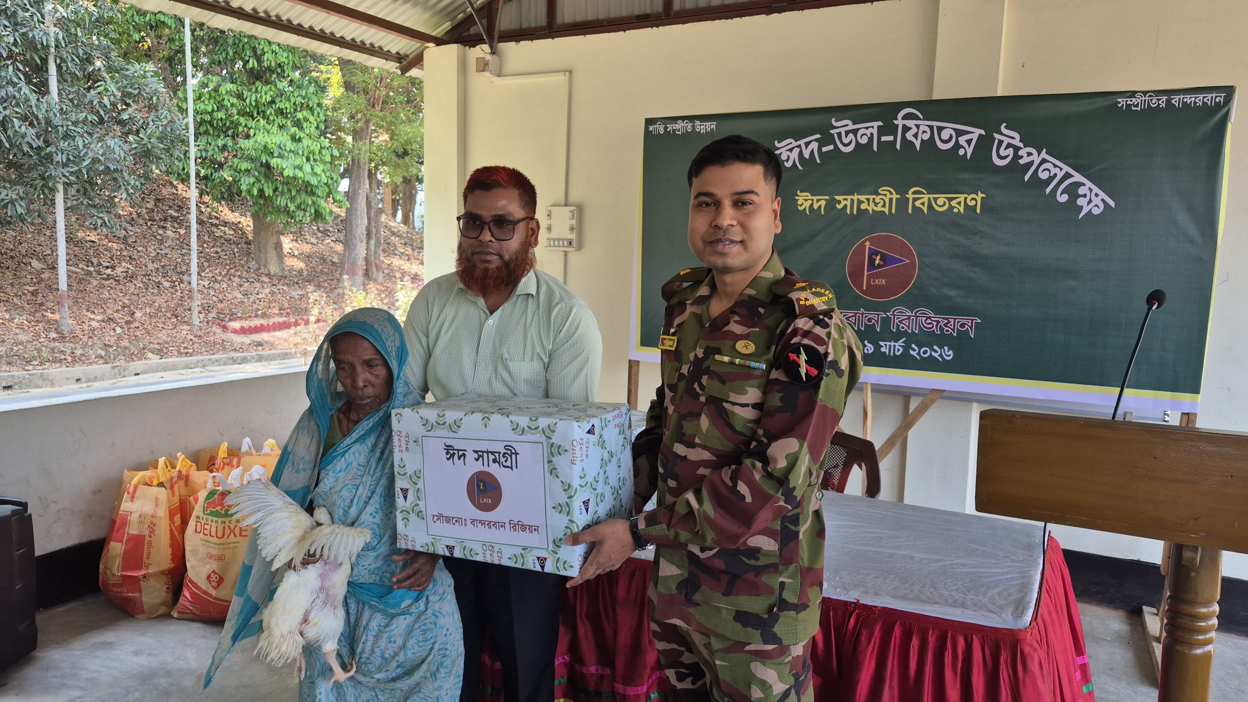 ঈদের আনন্দ ছড়িয়ে দিতে বান্দরবানে সেনাবাহিনীর ঈদ সামগ্রী বিতরণ ।